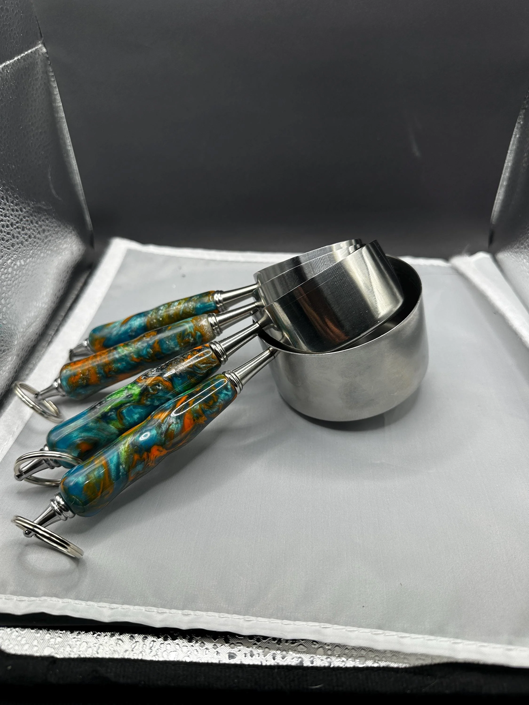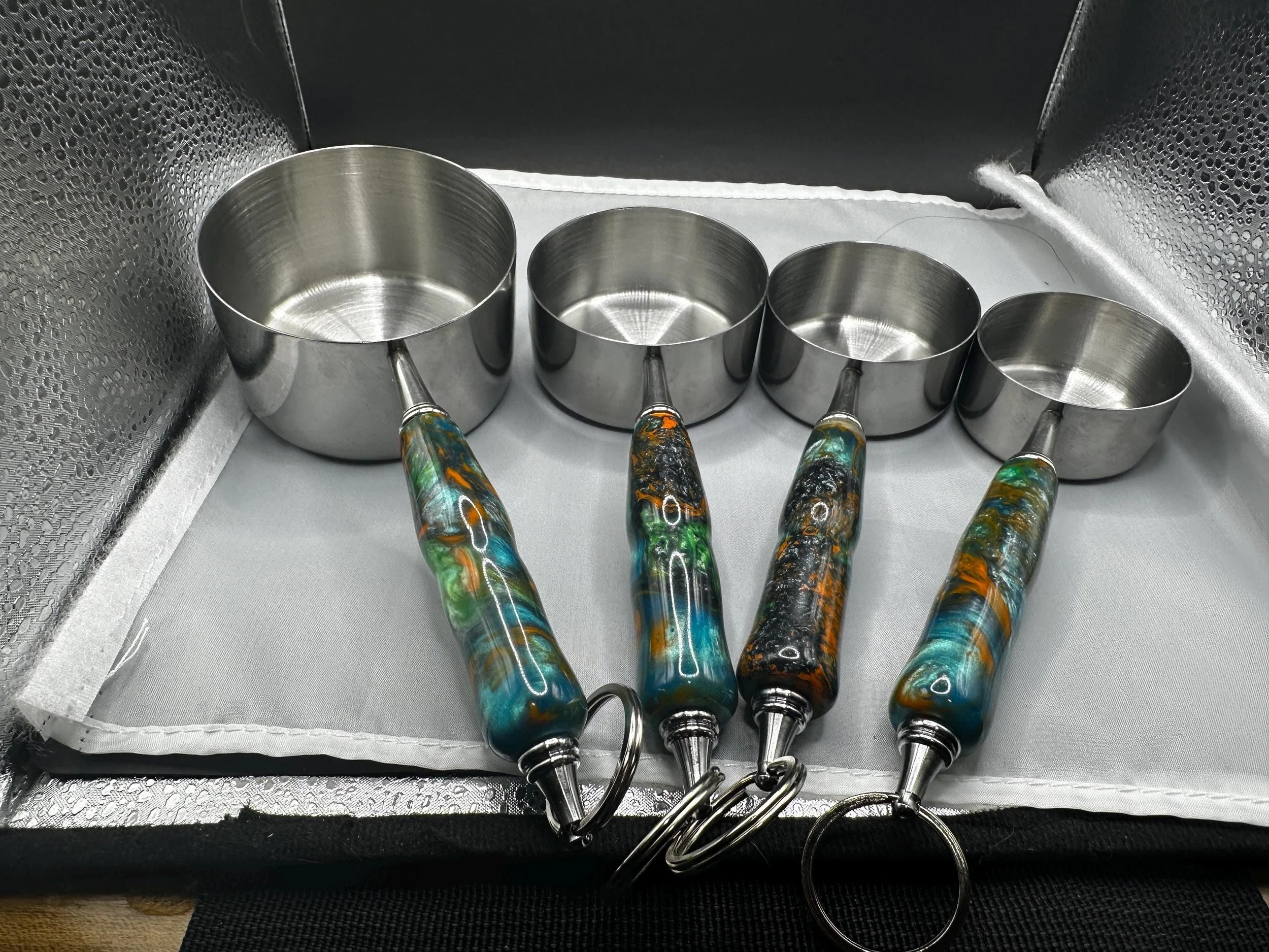 4 Piece Measuring Cup kit with hand-turned resin handles