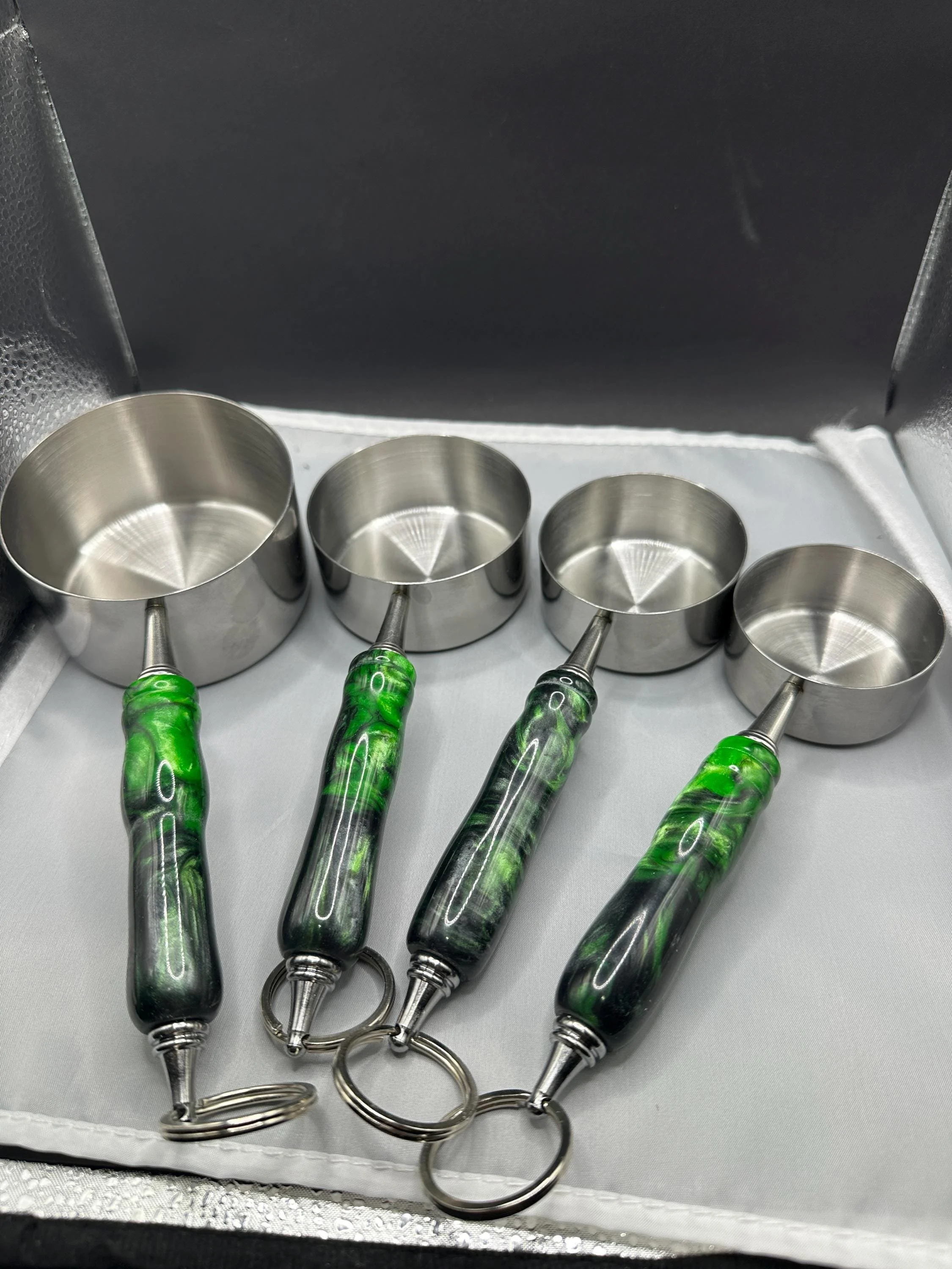 4 Piece Measuring Cup kit with hand-turned resin handles