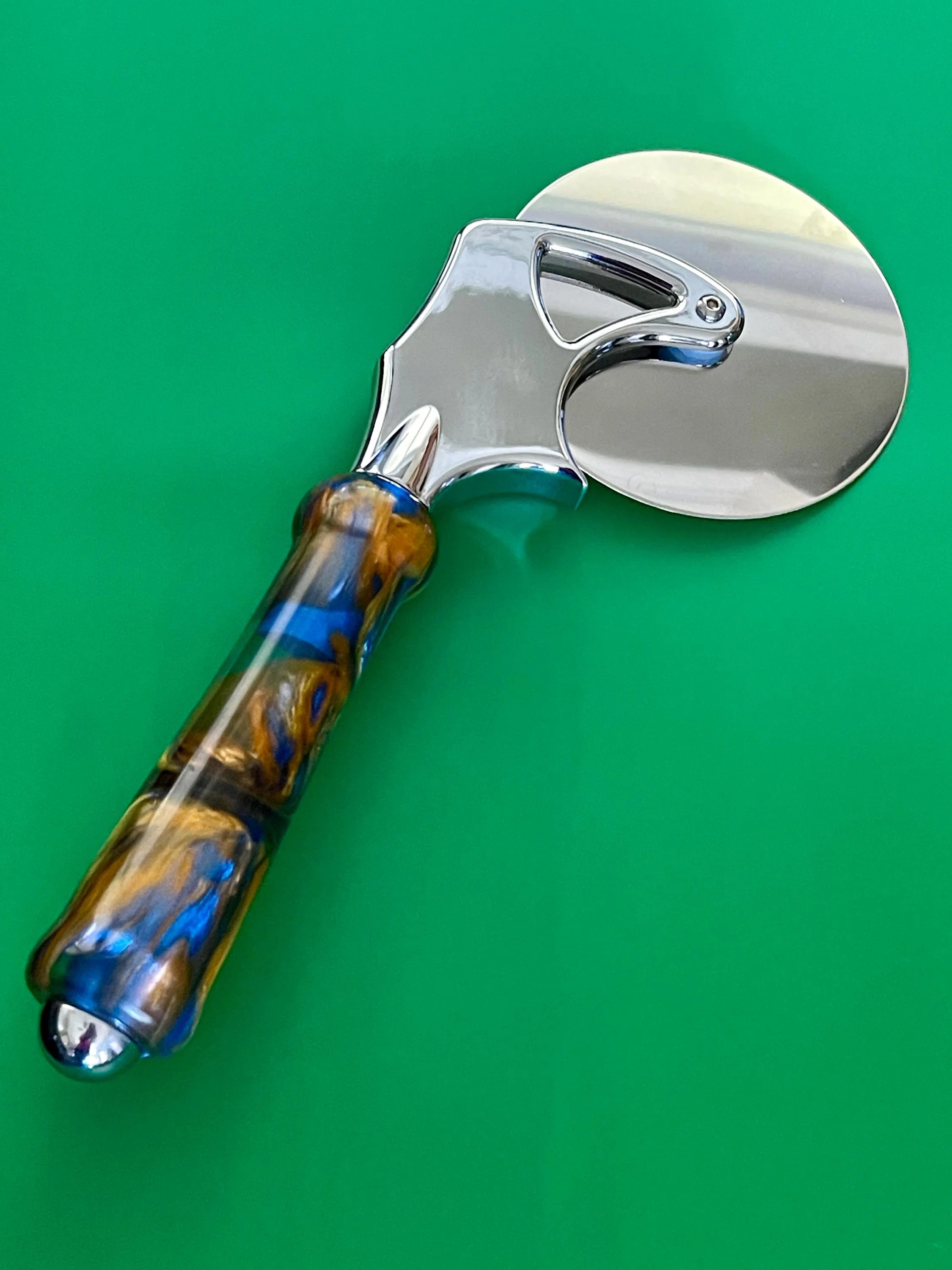 4' Stainless Steel Pizza cutter with unique resin Handle. Makes for a wonderful Valentine's gift, Christmas Gift, Birthday gift, Wedding Gift, Custom Gift, One of a Kind gift, Retirement gift, Mother's Day gift, Father's Day gift.