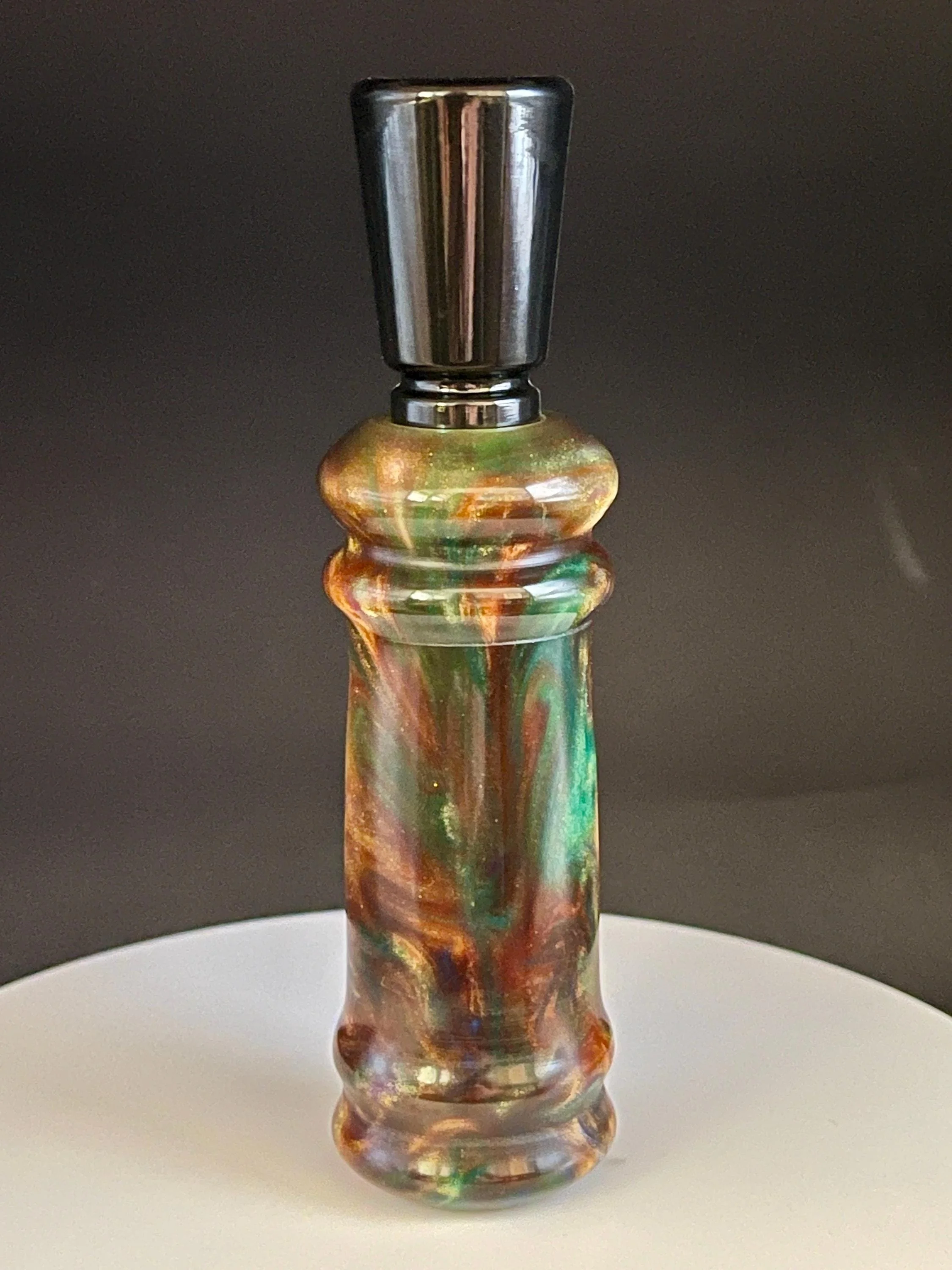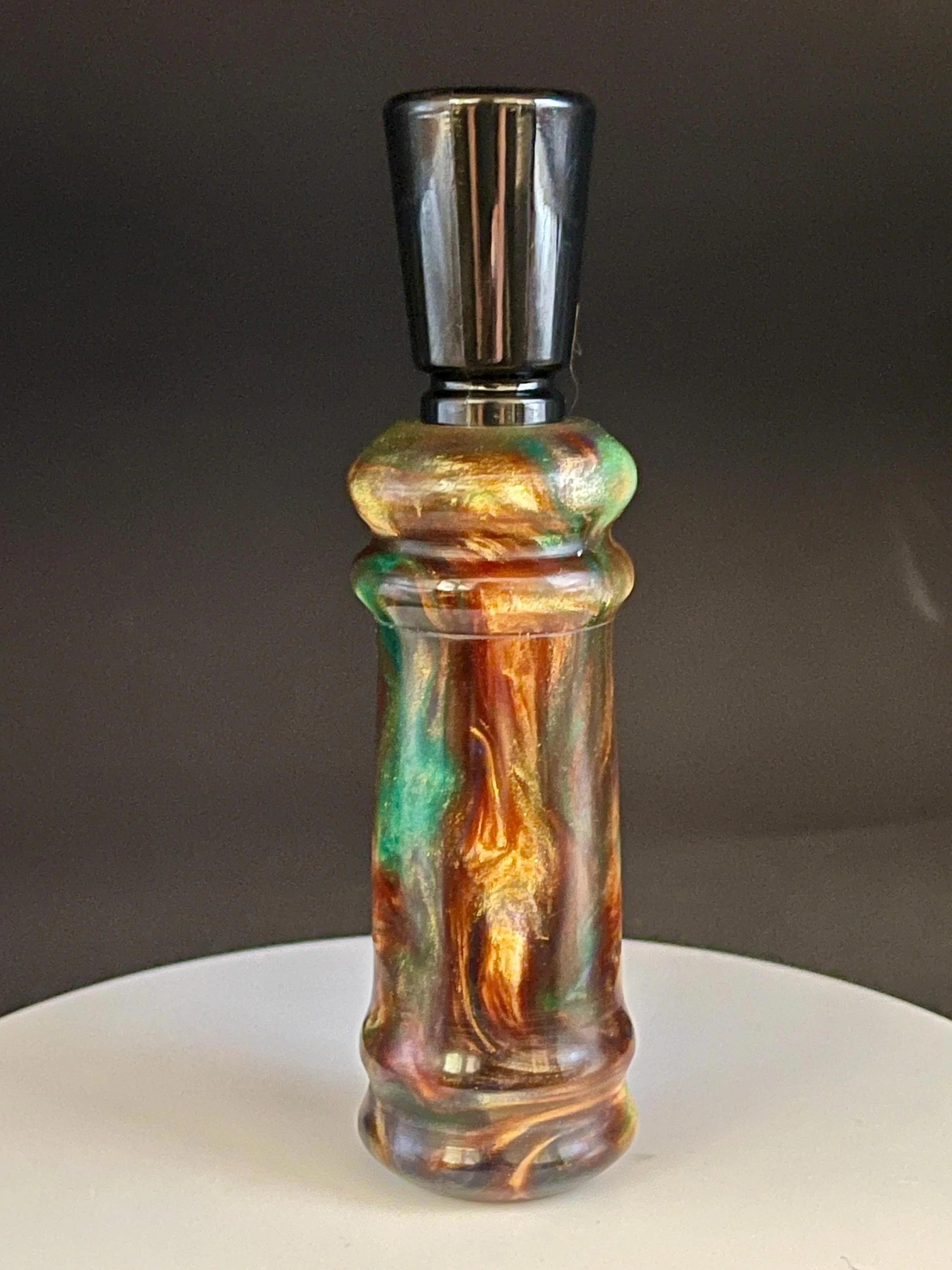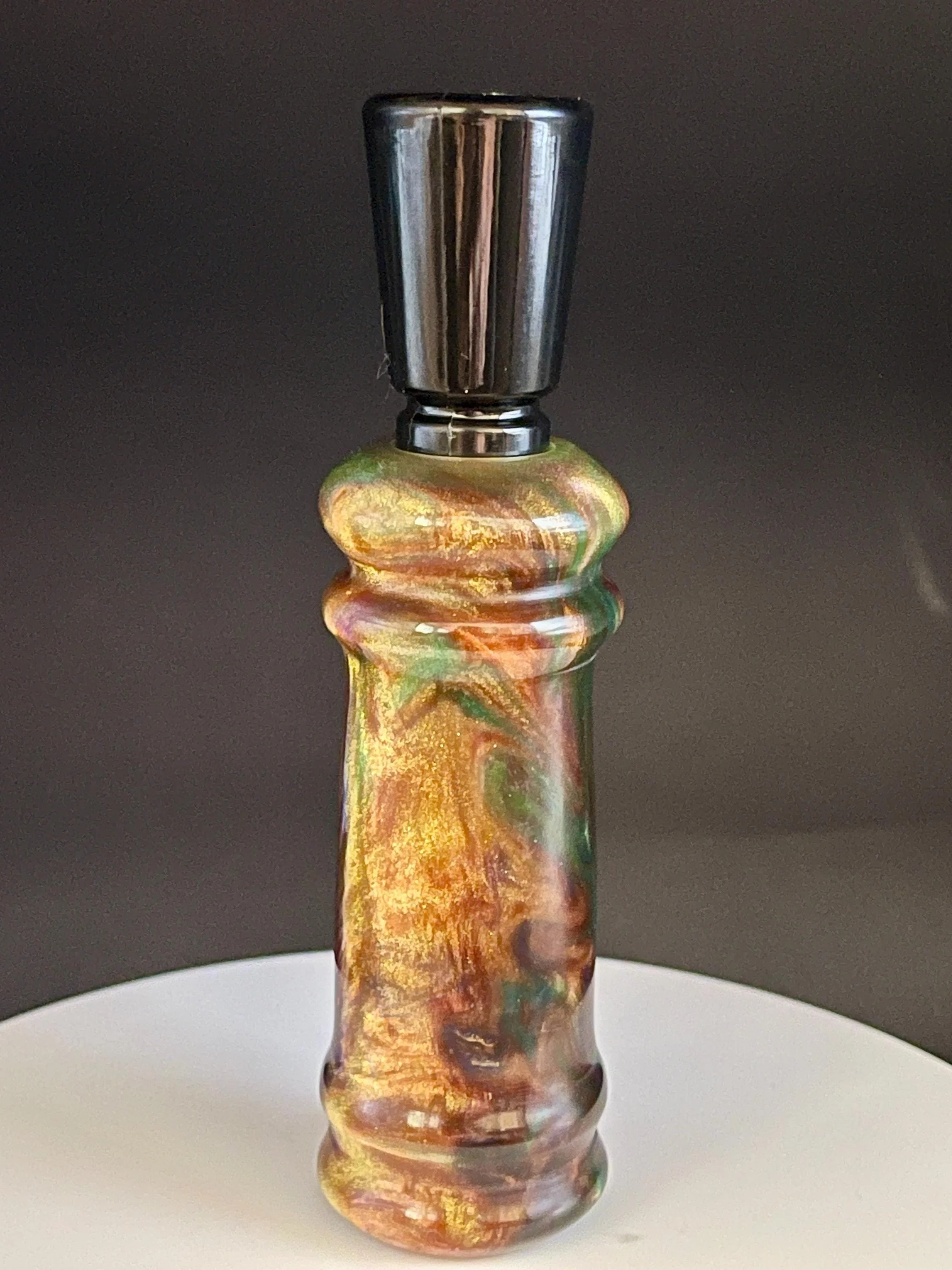 Shop › DC105 - Hand-turned Multi-colored Resin Duck Call Image 1 of 3 Image 2 of 3 Image 3 of 3 DC105 - Hand-turned Multi-colored Resin Duck Call $45.00 sold out Hand crafted single reed resin duck call that is so easy to use that you will sound like a flock of mallards ranging from high up to a feeding call. Sold Out Added! Hand crafted single reed resin duck call that is so easy to use that you will sound like a flock of mallards ranging from high up to a feeding call.