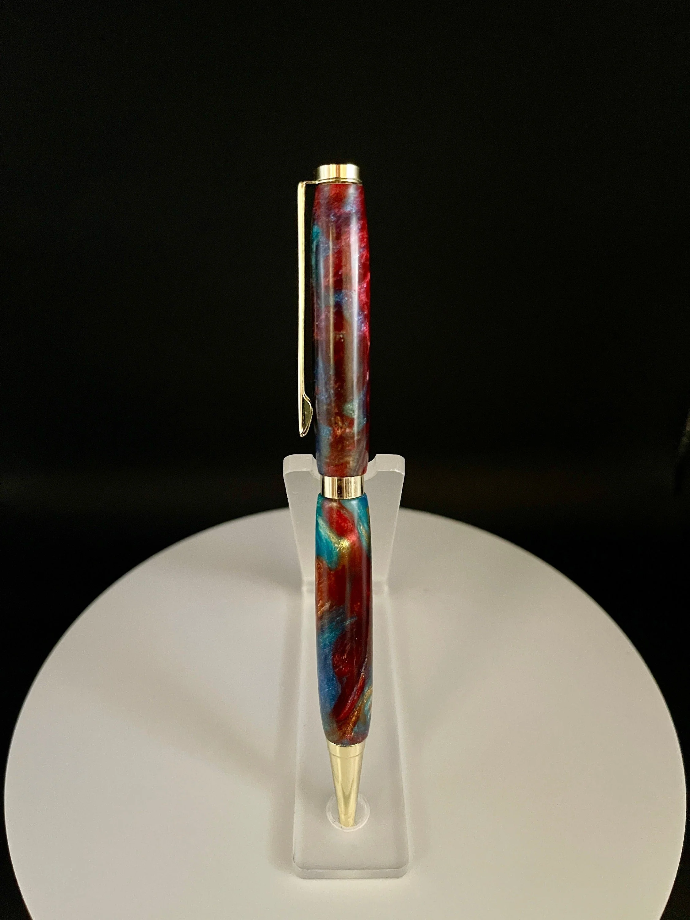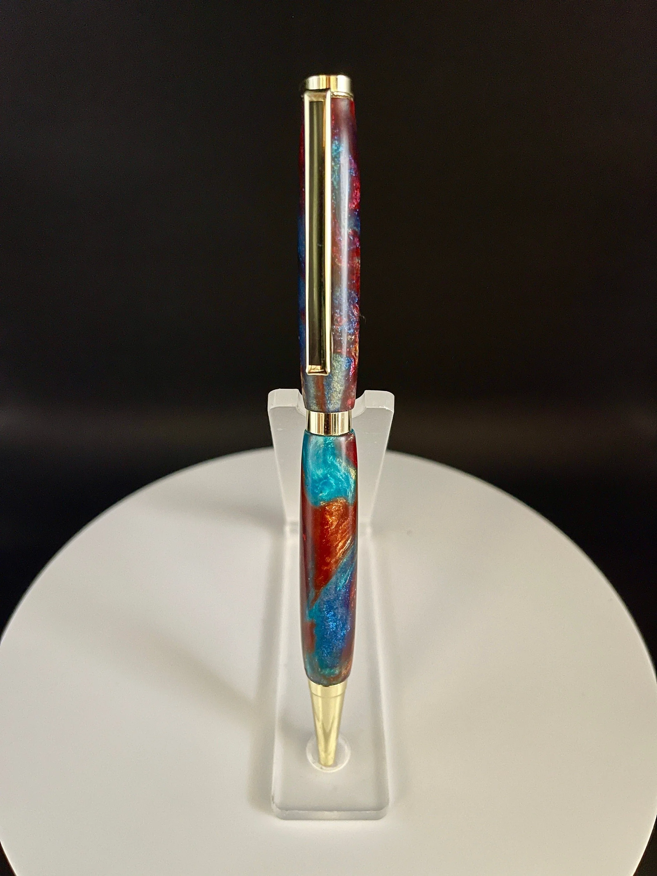 This pen has some great colors and the slim style is a popular gift that never goes out of style. This twist pen has a locking refill mechanisms that accept Cross style refills.