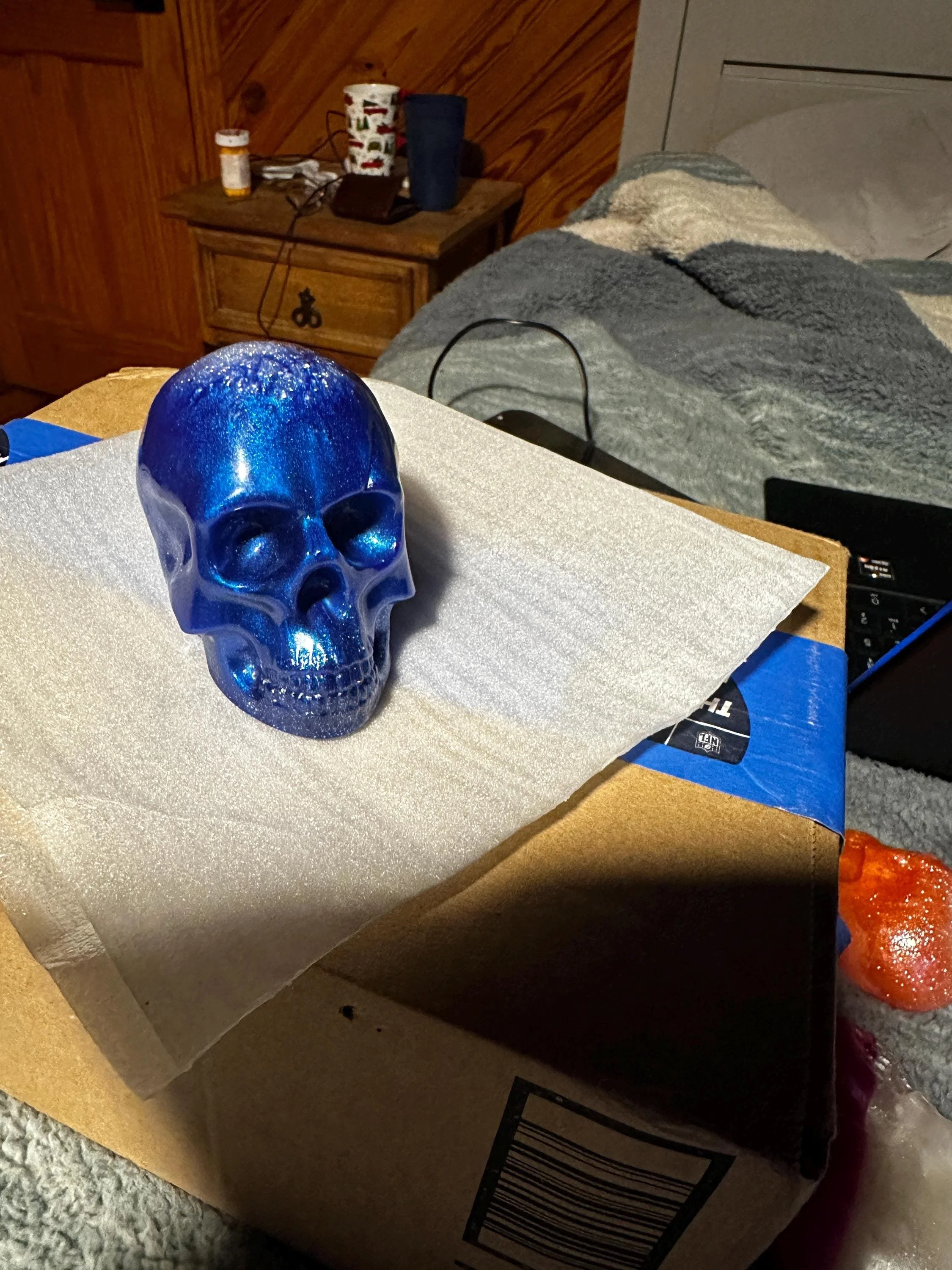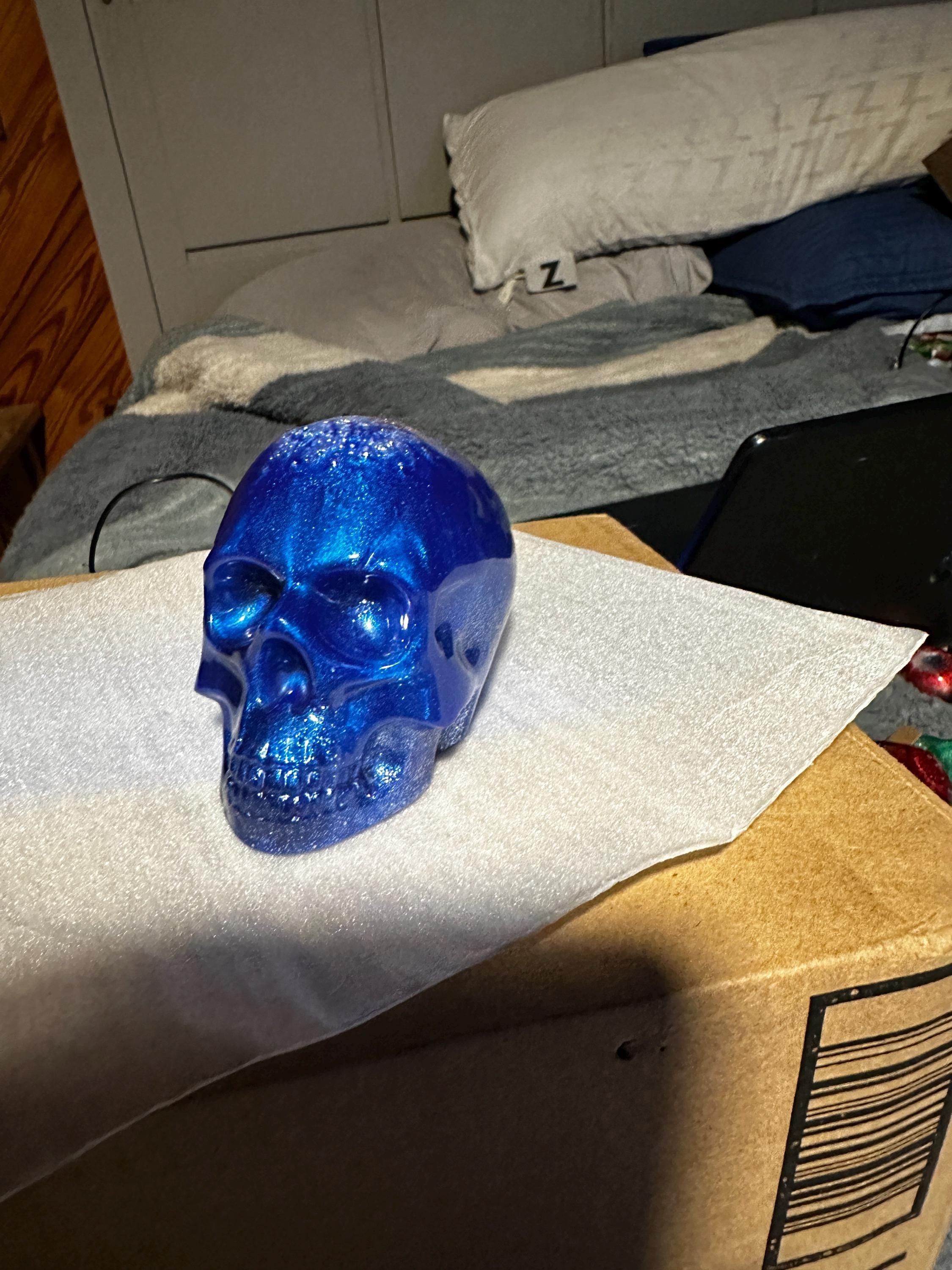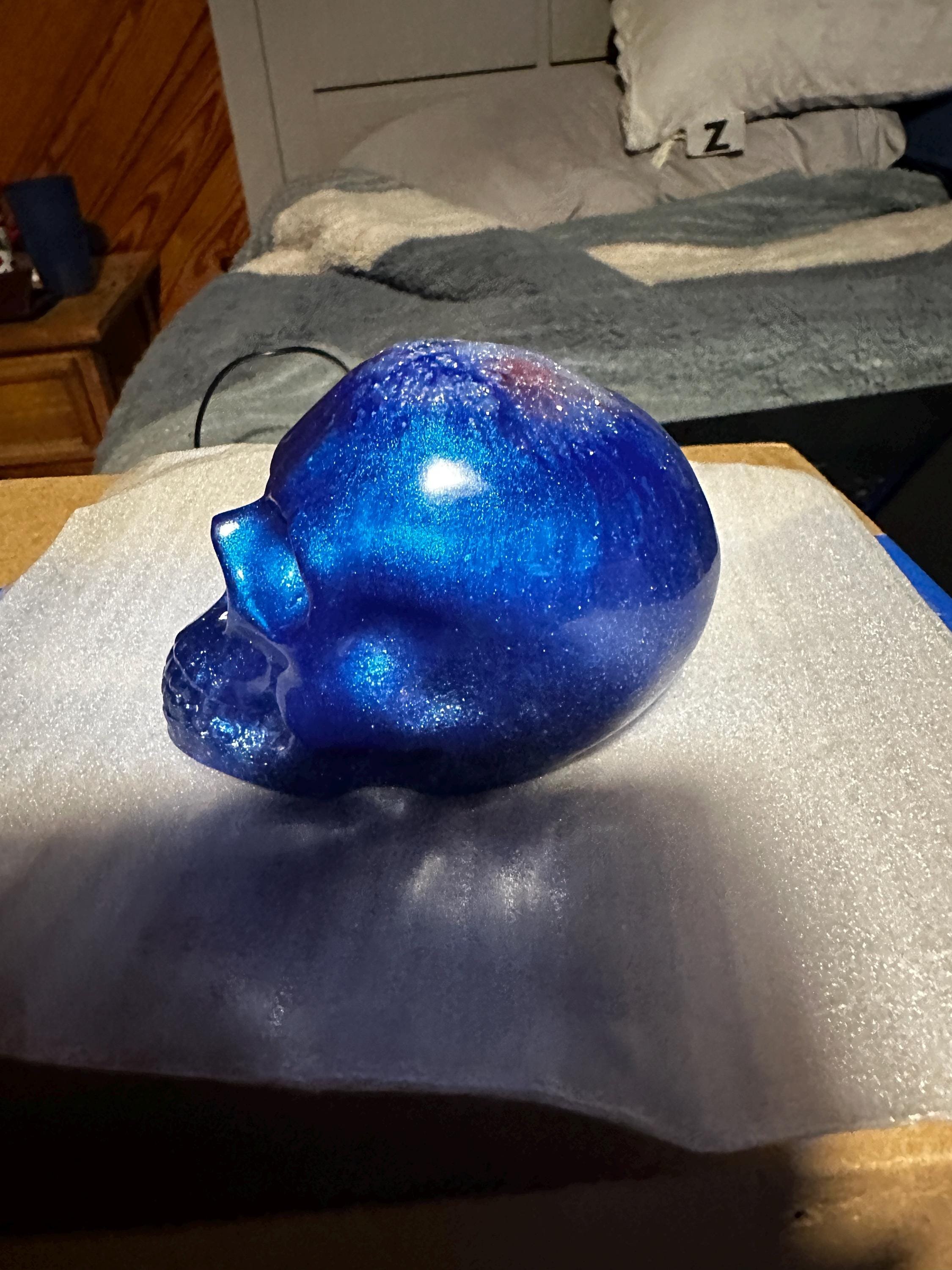 Shop › SK102 - Resin Skull - Blue/Silver Image 1 of 3 Image 2 of 3 Image 3 of 3 SK102 - Resin Skull - Blue/Silver $15.00 ~3x3" Resin Skull in Blue/Silver. Can be used as paperweight, Halloween ornament, Pencil holder and other things. Add To Cart Added! ~3x3" Resin Skull in Blue/Silver. Can be used as paperweight, Halloween ornament, Pencil holder and other things.