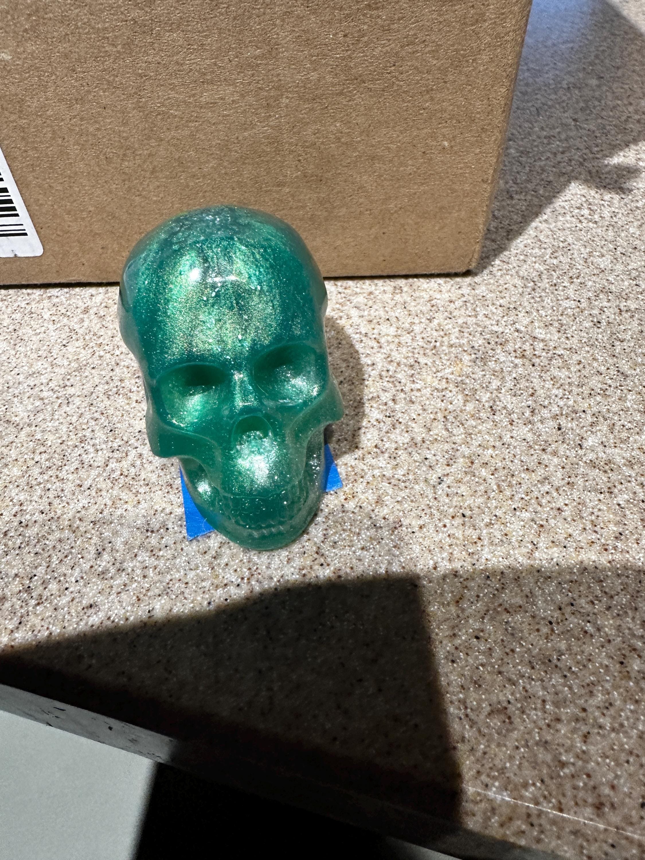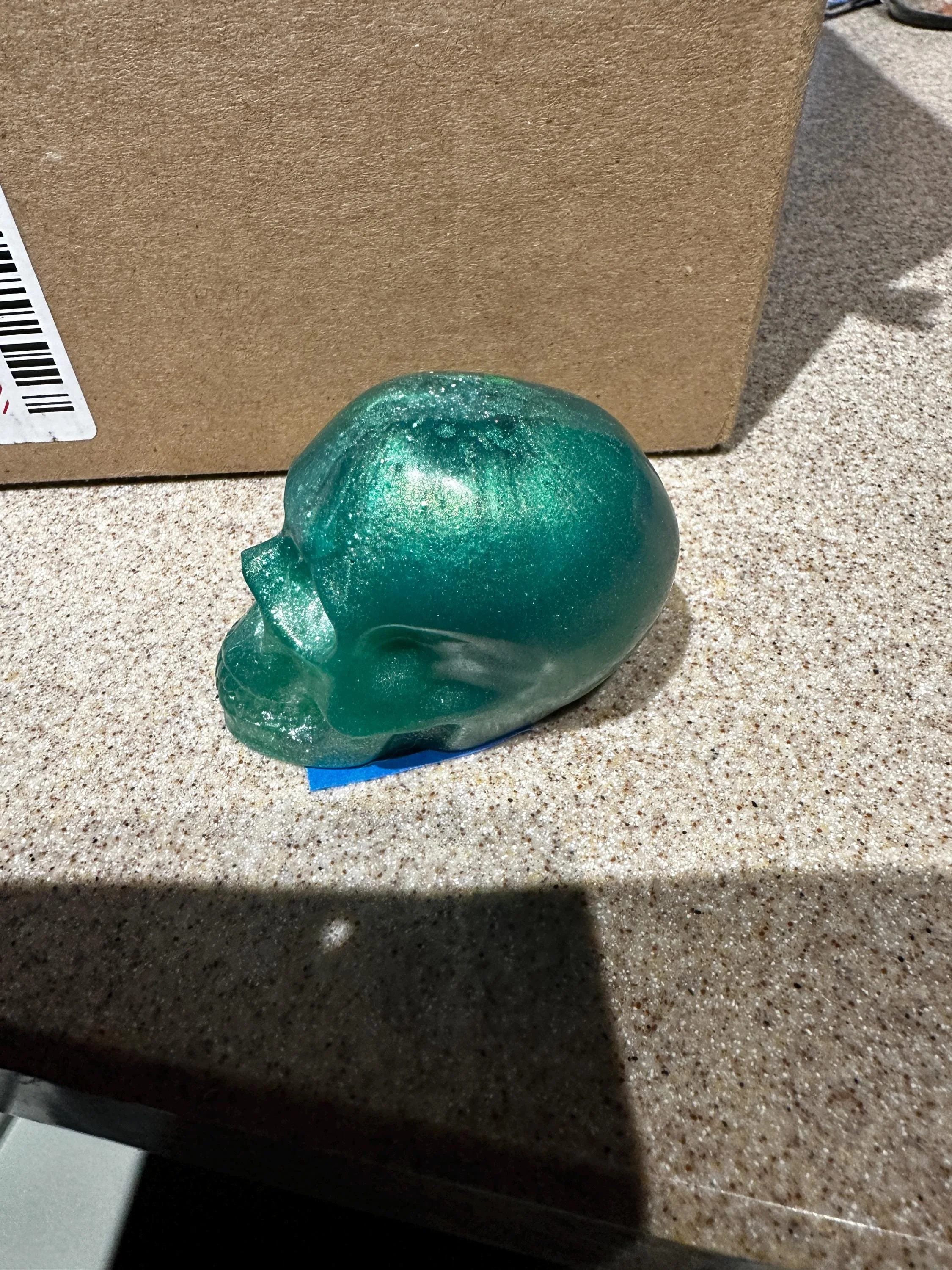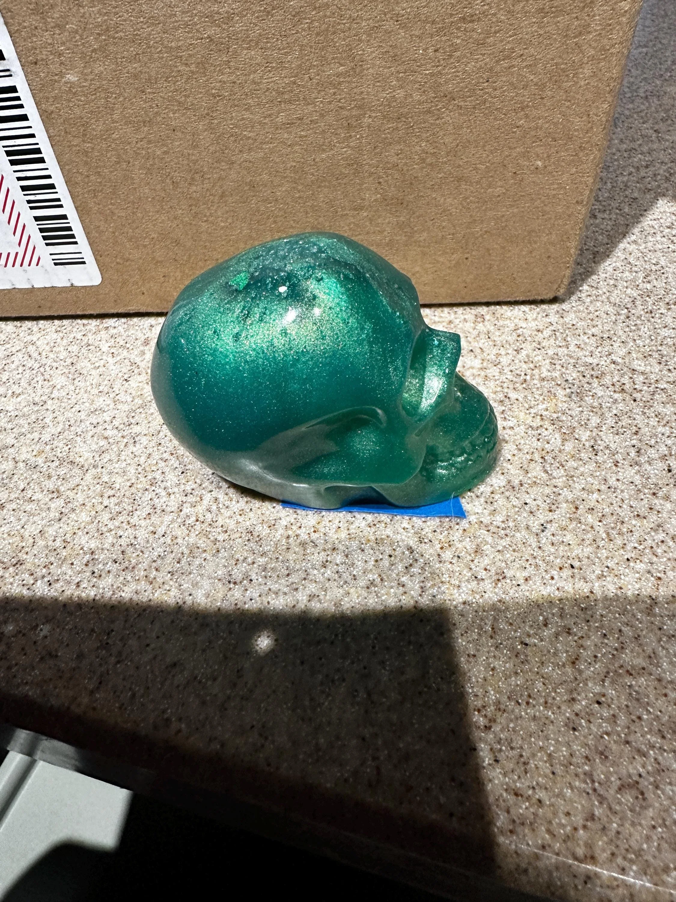 Shop › SK209 - Medium size Resin Skull - Green Image 1 of 4 Image 2 of 4 Image 3 of 4 Image 4 of 4 SK209 - Medium size Resin Skull - Green $10.00 ~2x2" Resin Skull Orange with Silver sparkles. Can be used as paperweight, Halloween ornament, Pencil holder and other things. Add To Cart Added! ~2x2" Resin Skull Orange with Silver sparkles. Can be used as paperweight, Halloween ornament, Pencil holder and other things.