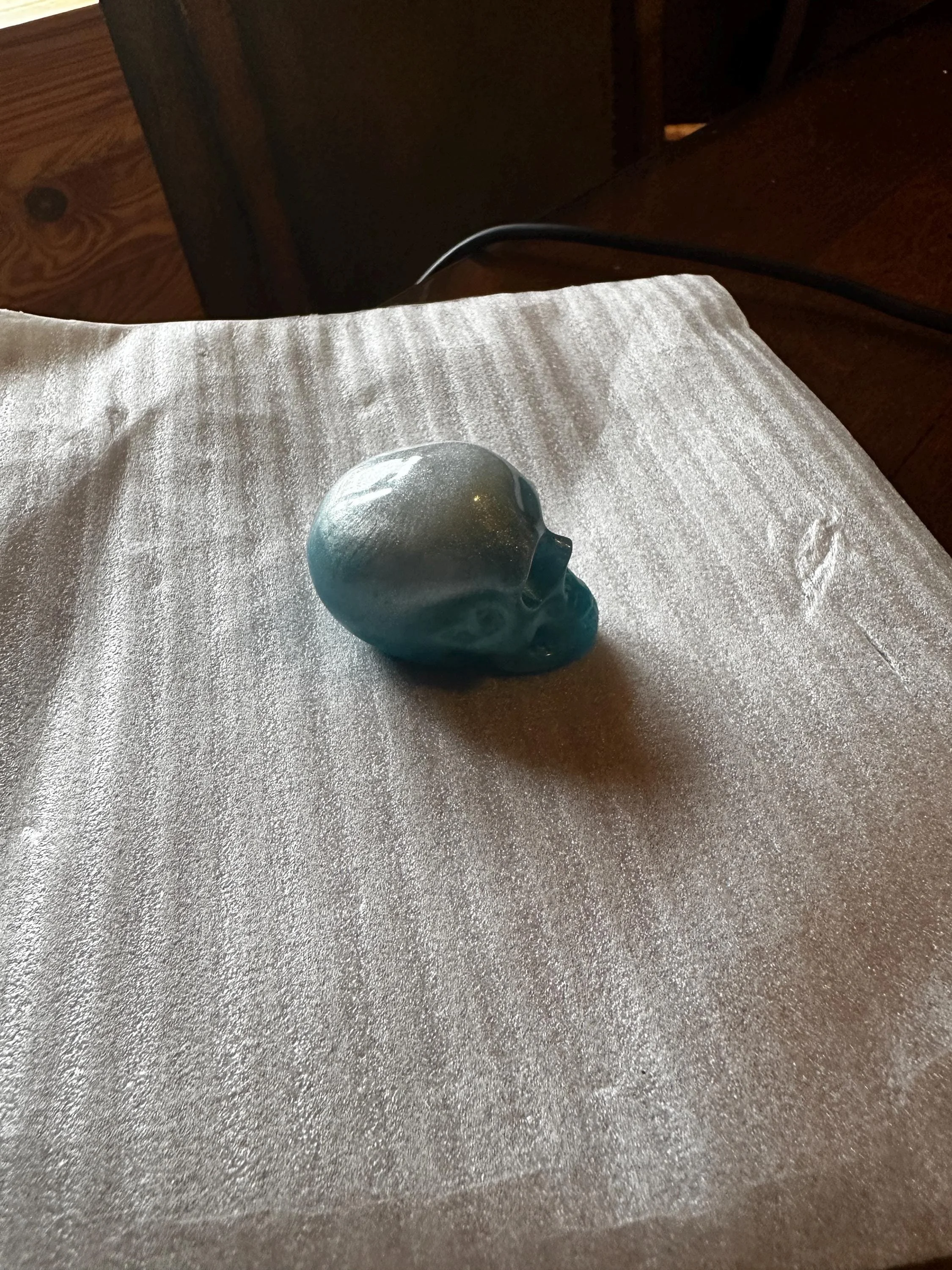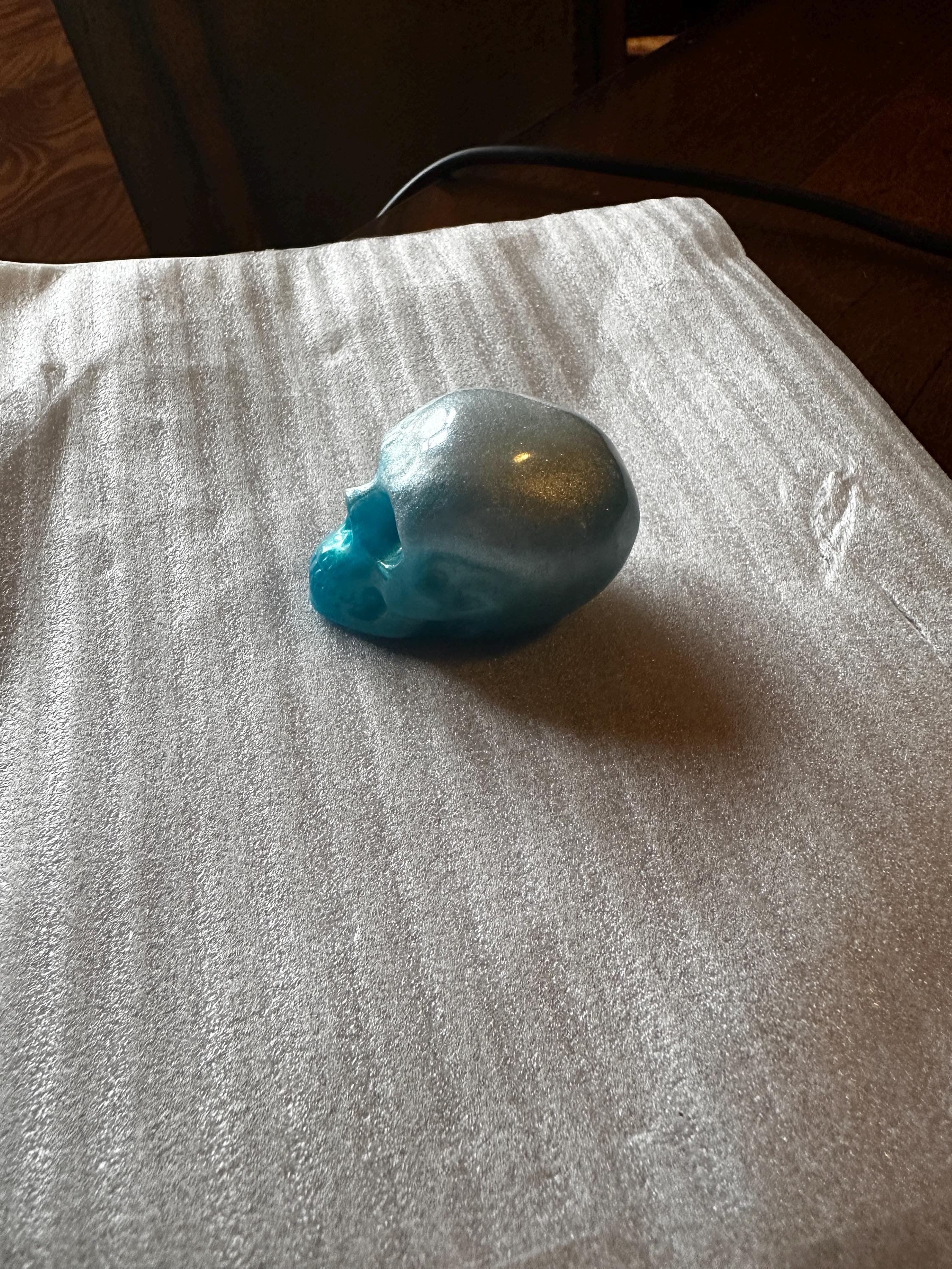 Shop › SK301 - Small size Resin Skull - Light Blue/White Image 1 of 3 Image 2 of 3 Image 3 of 3 SK301 - Small size Resin Skull - Light Blue/White $10.00 ~1x1" Resin Skull Lt Blue / White in Color. Can be used as paperweight, Halloween ornament, Pencil holder, Key Chain and other things. Add To Cart Added! ~1x1" Resin Skull Lt Blue / White in Color. Can be used as paperweight, Halloween ornament, Pencil holder, Key Chain and other things.