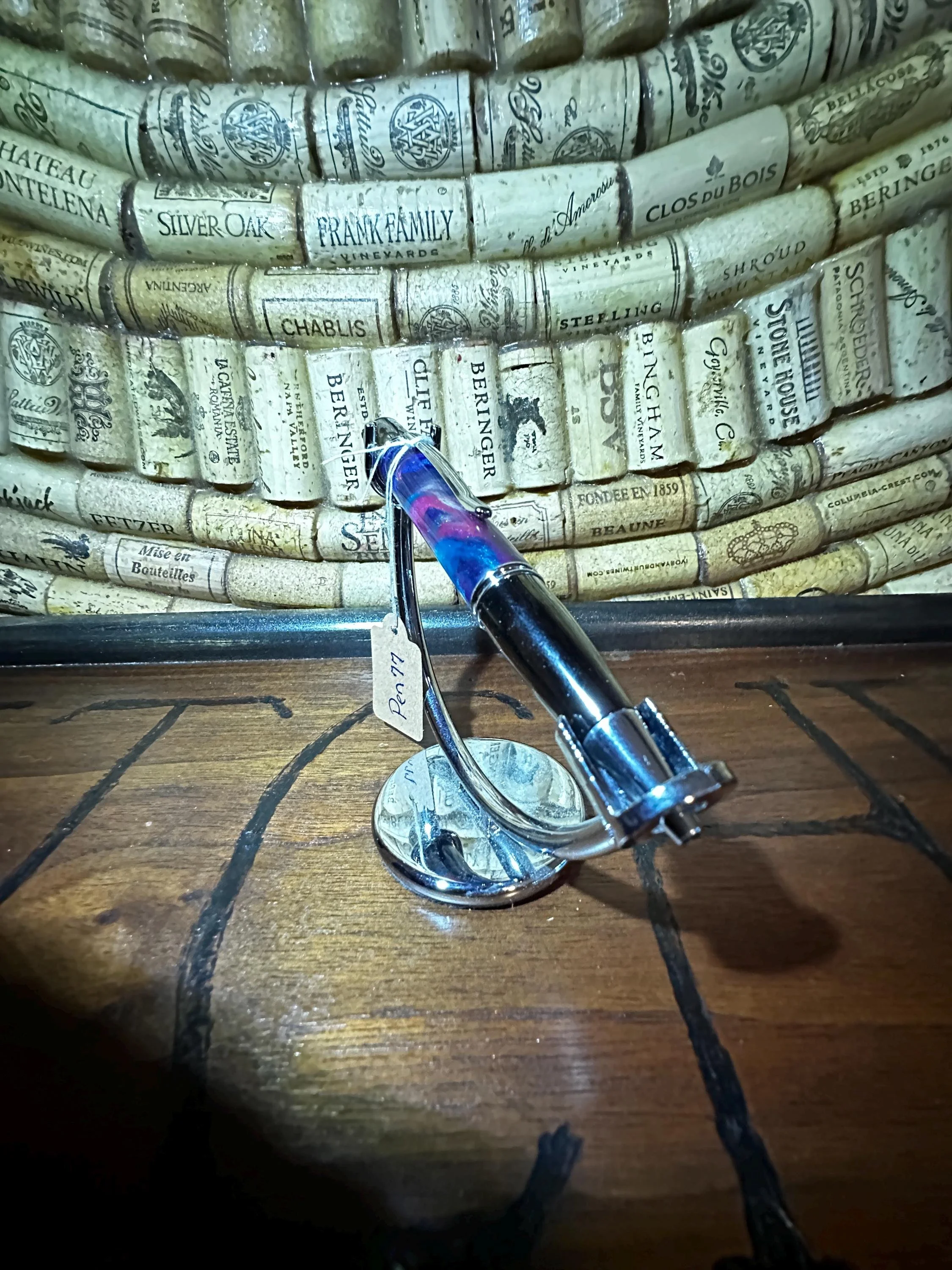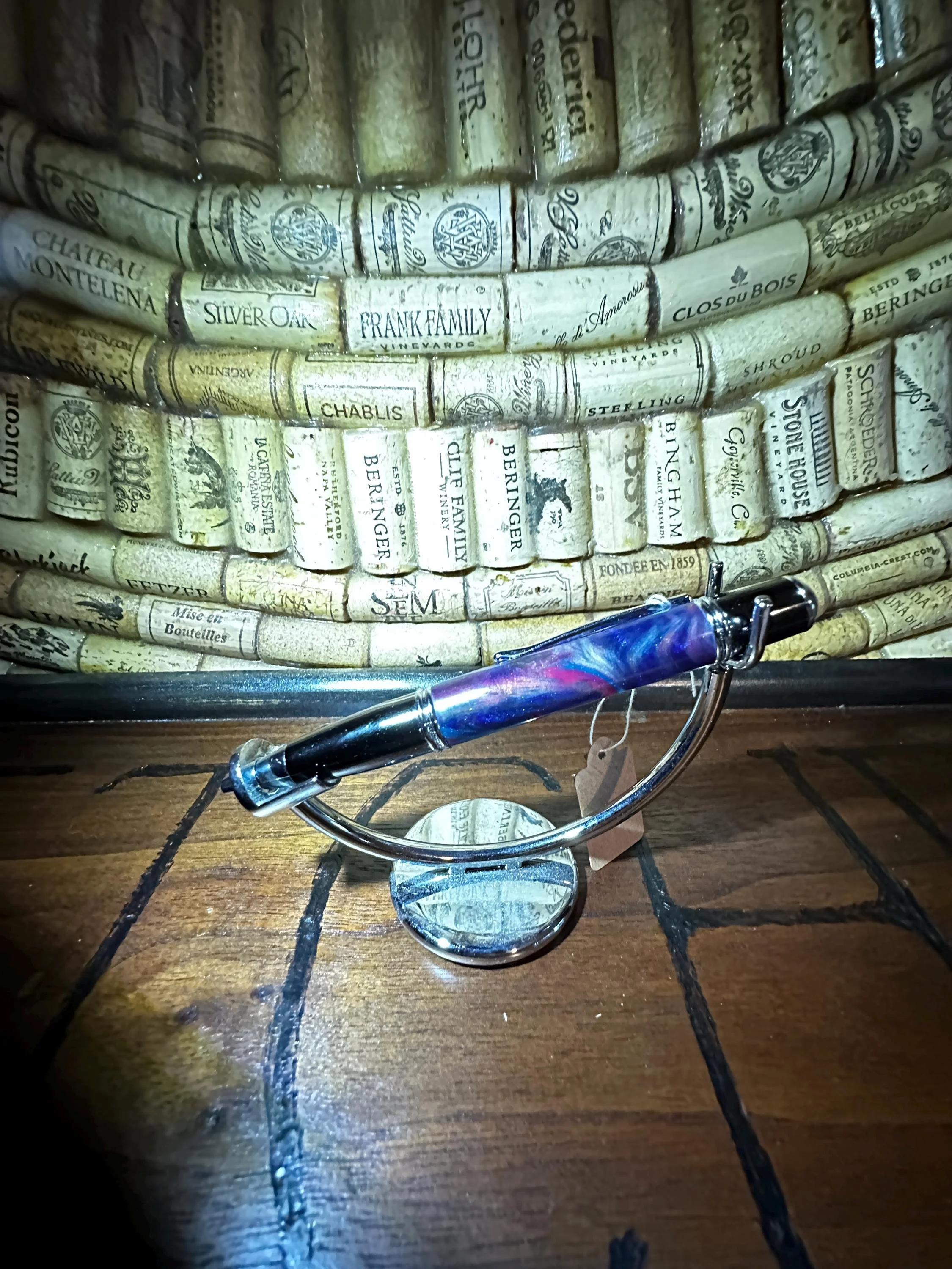 This Gatsby Twist Pen Kit exhibits mystery, flair and elegance. With its streamlined look, striking black components and smooth twist mechanism it will surely compliment any executive's desk. Accepts Parker style ball point refills. A beautiful pen. Stand not included