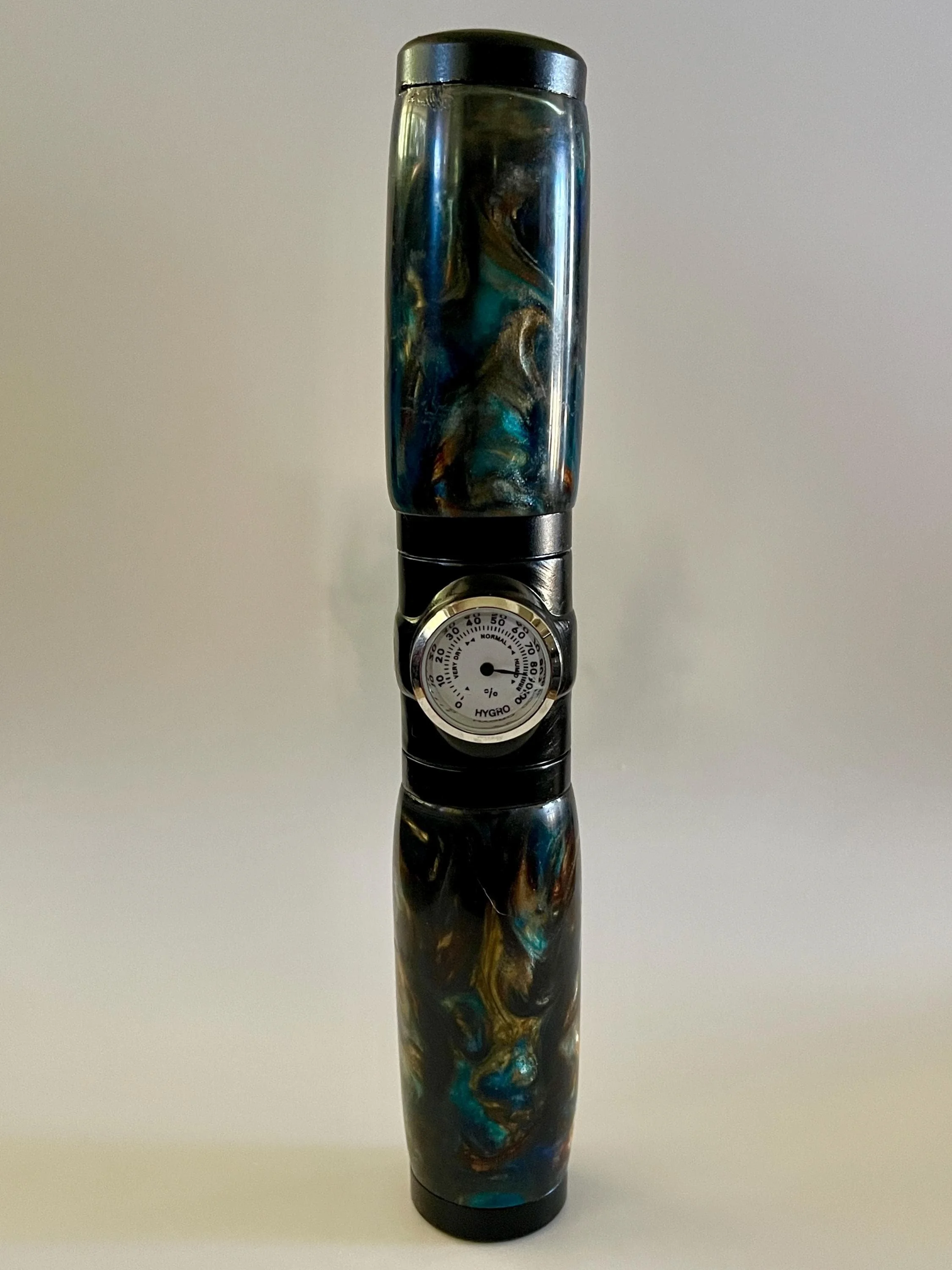 Tubular cigar humidor for your favorite cigar. Maintains the correct humidity for optimum freshness, flavor and shelf life. Makes an elegant presentation case for a gift, a guest, or for that special occasion. It uses distilled water or humidifier solution to maintain 70% humidity, Tubular humidor comes complete with a hygrometer that displays current humidity Uses distilled water or humidifier solution to maintain 70% humidity Can accommodate a 7'' Classic Churchill cigar with 47 ring gauge.